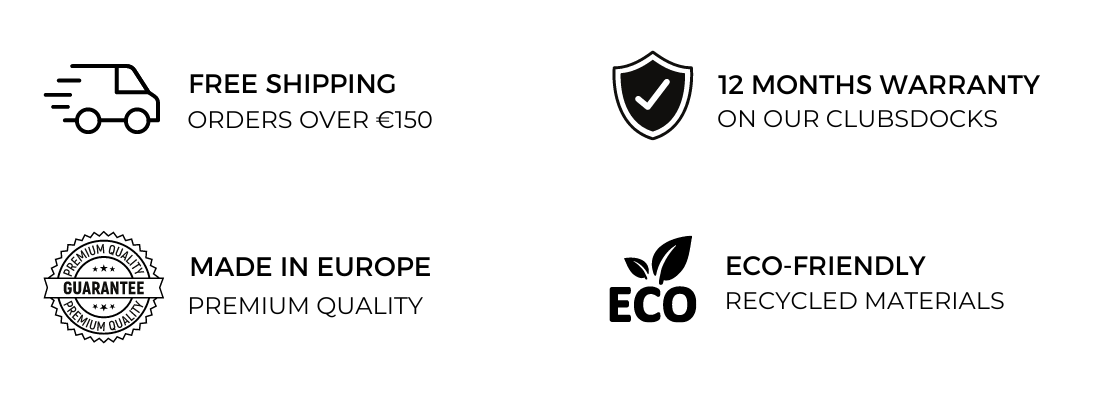 ClubsDock features a premium, high-quality steel construction covered with a special coating that is resistant to rust and oxidation. Making it possible to hang in-and outdoors.